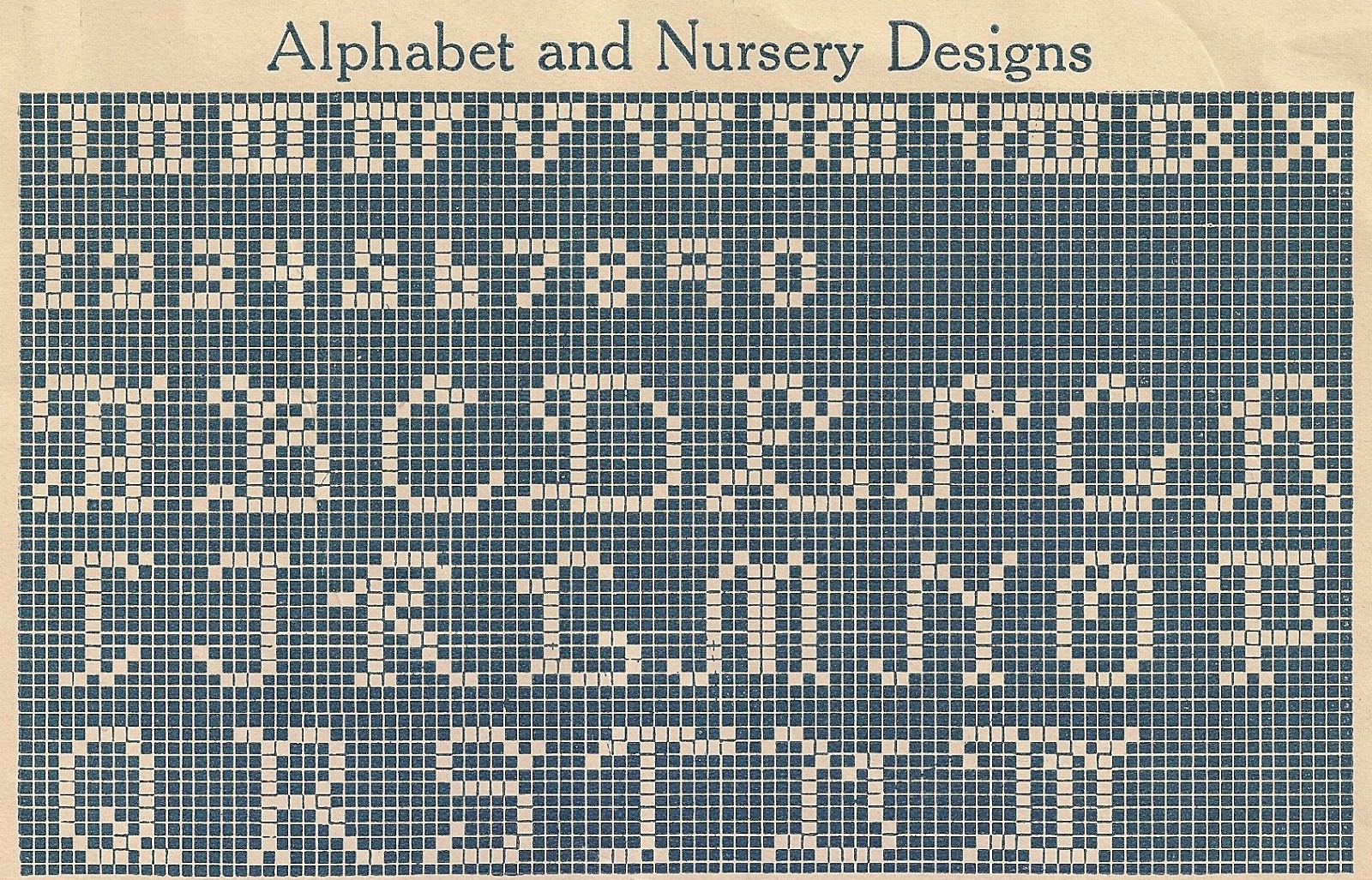 These vintage animal and alphabet patterns would look great incorporated into a baby's sampler, stitched onto a baby bib, filet crocheted onto a baby pillow, you could cross stitch onto a gingham dress or toddler's apron. Really, there are so many things you could do with these cute, retro cross stitch or filet crochet patterns. Have fun stitching!